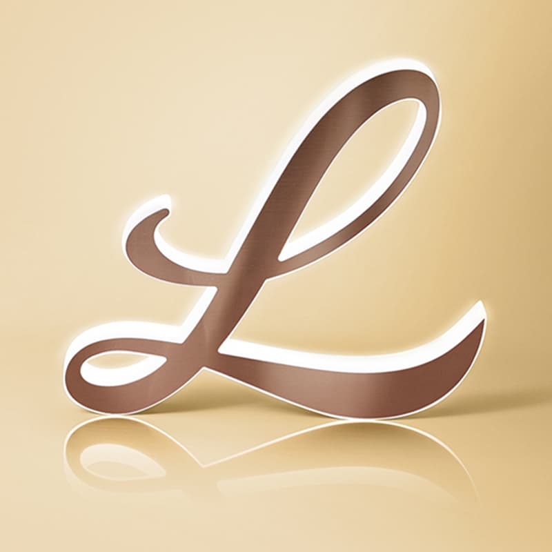 Wzmocnione konstrukcją od środka. Nieszablonowe wielkie litery 3D osadzone na podeście to odważne podkreślenie Twojej nazwy, loga marki...